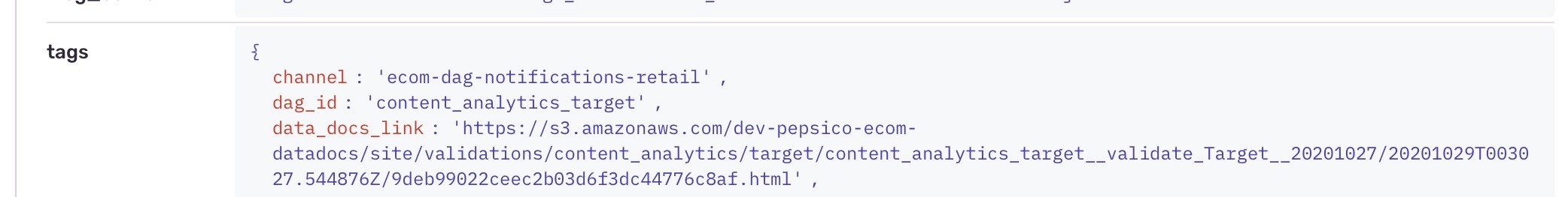 I am trying to post a link as a tag in my sentry issue sent as a warning from the Python SDK, but I am getting a weird error when displaying it: